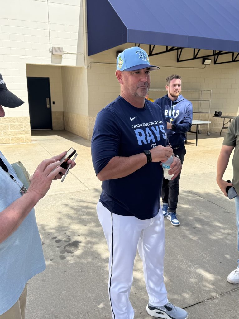 *Former Orioles manager Brandon Hyde met with the Baltimore media earlier today, wearing a Tampa Bay Rays spring training jersey and hat in his new role as senior advisor in the baseball operations department.